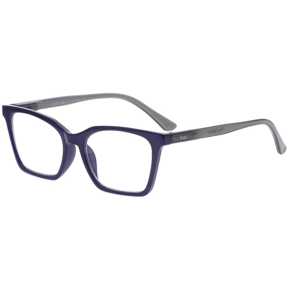 Γυαλιά πρεσβυωπίας σε χρώμα μωβ με γκρι βραχίονες. Πιστοποίηση ΕΟΦ για τους φακούς. Τα γυαλιά FROG OPTICAL αποτελούν την ιδανική επιλογή για άνετο και ξεκούραστο διάβασμα. Το προηγμένο σύστημα Flex, ενισχύει σημαντικά την ευκαμψία του βραχίονα και την ανθεκτικότητα του σκελετού. Παράλληλα, οι ασφαιρικοί φακοί υψηλής τεχνολογίας διασφαλίζουν τη μέγιστη οπτική ποιότητα, προσφέροντας αντιχαρακτική αντοχή, υψηλή ευκρίνεια, φυσική απεικόνιση, ευκολία στον καθαρισμό και βέλτιστη υδροφοβική δράση. Η σειρά FROG OPTICAL διατίθεται σε μεγάλη ποικιλία χρωμάτων, ενώ περιλαμβάνει όλες τις δυνατές διαβαθμίσεις φακών.